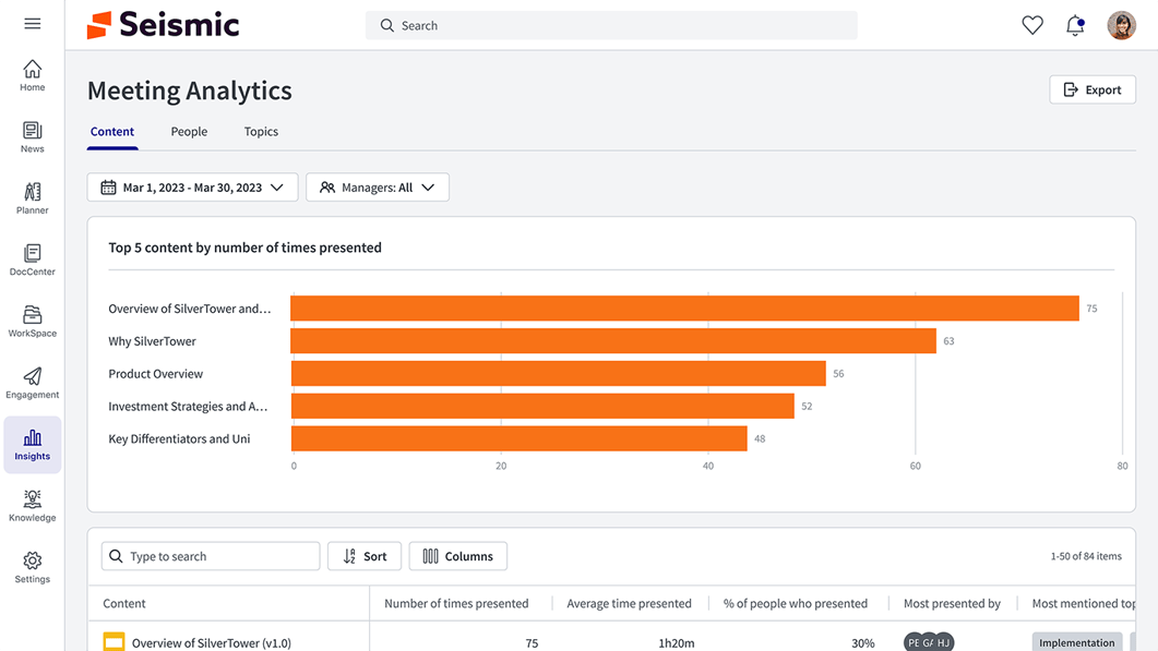 Today, we’re excited to introduce the latest innovation to the Seismic product family, Seismic for Meetings. Seismic for Meetings is a major product innovation that will power better customer experiences by ensuring sales teams can more effectively prepare, present, and follow up on every meeting to accelerate and win more deals. Intelligent insights also help drive stronger content and training programs for enablement.